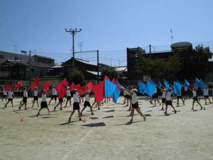 昨日と今日で,3曲目が完成しました!2週間で3曲というハイペース。5年生も6年生も覚えるのが早くて,とても頼もしいです。わたしが間違えたときには,「あそこの振りはどうしたらいいですか。」と確認してくれます。大人も含め,みんなで作り上げるフラッグ体操。いよいよ来週は4曲目!みんなで楽しみましょう〜!