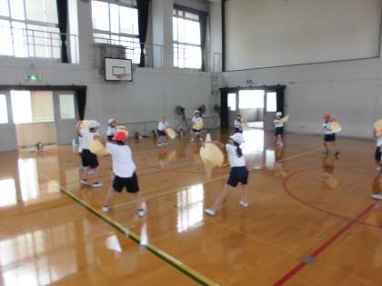 体育学習発表会に向けて,2年生と一緒に花笠音頭の練習を頑張っています。