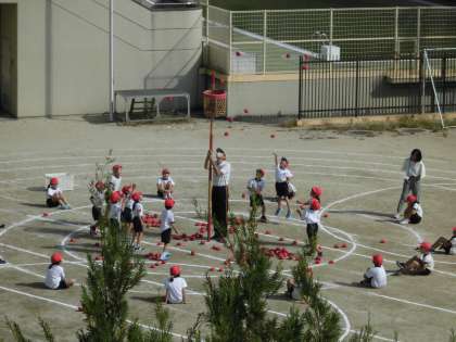 初めての玉入れ,今日はどちらが勝ったのでしょうか・・・?また,お家で話題にしていただければと思います。