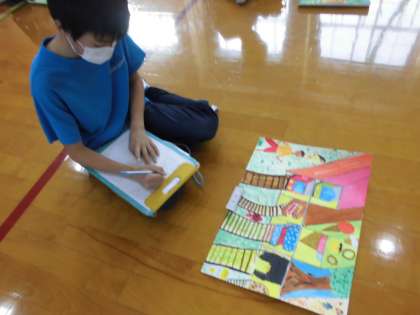 後半は自由に歩き回って,友達の絵を見て回りました。