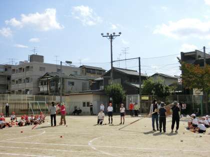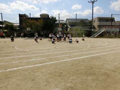 3・4年生の玉入れも盛り上がりました。3年生が玉入れをして,その上に4年生が投げる球が入って,最後にみんなで投げ入れます。