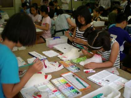 9日(土)の午前中、PTA主催の親子ふれあいデーが行われました。今回は「お面づくり」をしました。和装アートユニット「なみまにさんかく」の方に来ていただき、稲荷大社にちなんだ「きつねのお面づくり」をしました。きつねのお面に子どもたちが色を塗って、目に穴をあけて世界に一つだけのお面を作っていました。みんな一生懸命で一人一人個性のあるお面が出来上がりました。最後は全員できつねのお面をもって記念写真をとりました。23日24日の稲荷本宮祭に浴衣でお面をつけてきてくれればと思います。