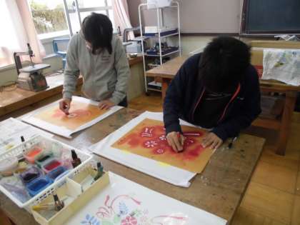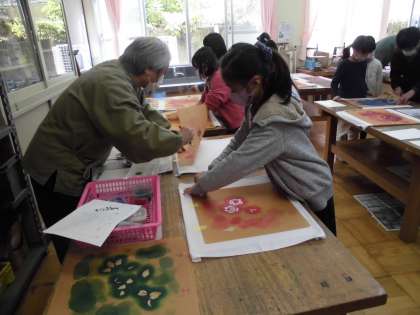 小さな刷毛で,グルグル回しながら,色を付けます。