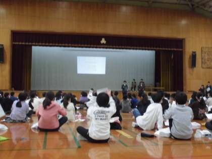 中学校の先生の授業を楽しく受け,生徒会主催の学校紹介クイズに盛り上がりました。最後は,部活動見学でカッコイイ中学生の活動風景を見せていただきました。
