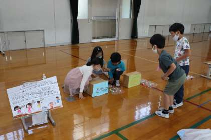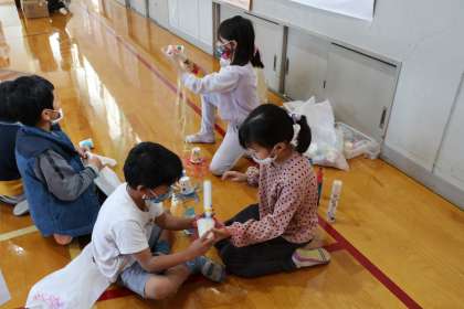 この日に向けて,みんなでがんばって準備してきたおもちゃやさんの本番でした。1年生が楽しんでくれている姿を間近に見ることができて,子ども達も「がんばって作ってきてよかったなあ。」という思いを持てたようです。終わりの言葉の人が「感想を言ってください。」とたずねたところ「もっとやりたかった。」「手作りでこんなに楽しいとは思っていませんでした。」などと言ってくれて,みんなも本当にうれしそうでした。
