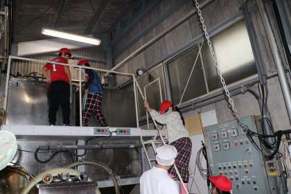 圧巻は,こんにゃくの原料を混ぜ合わせる大きな機械を