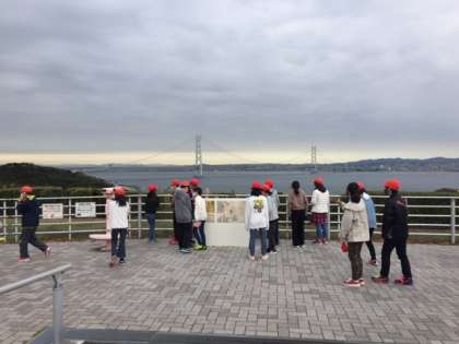 後ろに見えるのは,明石海峡大橋です。