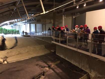 震災記念館の様子です。最初に館長さんのお話を聞きました。迫真に迫るお話でした。その後、野島断層を見学し、地震体験もしました。