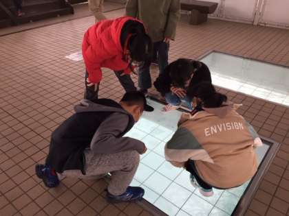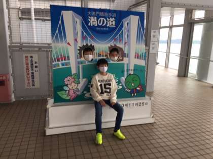 渦の道に到着しました。期待した渦潮は??です。それでもみんな記念写真を撮って楽しんでいました。