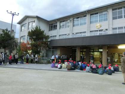 予定通りの時間に,6年生が修学旅行から帰ってきました。手にも背中にも心にも,いっぱいのお土産を持って。