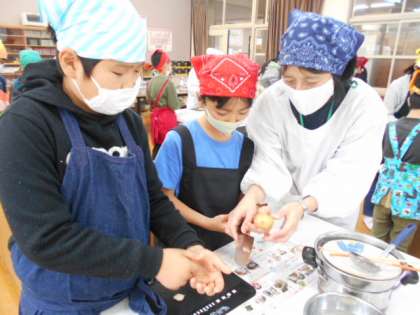 今日は家庭科の学習で調理実習を行いました。加熱調理の方法は様々ですが,まずは基本の「ゆでる」を学習しました。今回のメニュー「ほうれん草のおひたし」,「ゆでいも」でした。準備から片付けまで手際よく進めていましたし,材料の洗い方,切り方,火加減も完璧でした。自分たちで作った料理は美味しいようで,「毎日調理実習したいな〜。」と笑顔で話していました。