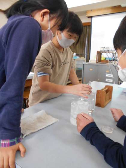 ついに待望の理科室での学習がスタートした4年生です。