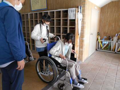 認知症について学んだり,車いす体験をしながら地域の中で困っている人がいる時は,どのように対応していけばよいのか話し合いました。