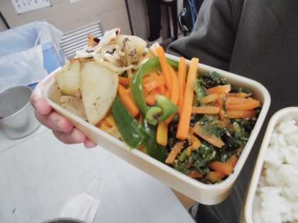 作ったメニューは「野菜のいろどりいため」と「ジャーマンポテト」。