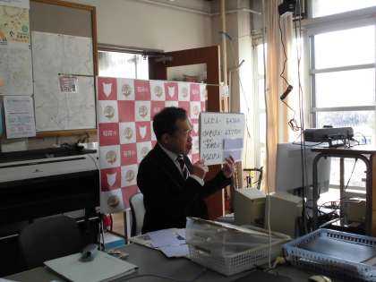 阪神・淡路大震災の写真を見せながら,