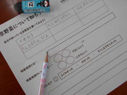 給食にはどのような京野菜がでてくるのかを知った子どもたちは,