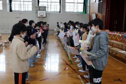 小さい学校ですが,コロナに負けずこんなにあたたかい送る会を全校でプレゼントしてもらって本当に素敵ですね。
