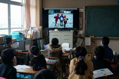 ワイワイと懐かしそうに見入る子どもたちですが,見終わったあとには少しウルウルしている子もいました・・・。