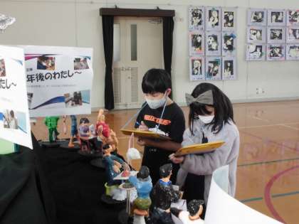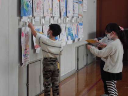 今日から始まった校内作品展。早速鑑賞に行きました。それぞれの学年の中から自分にとっての一番すてきを見つけようというめあてで鑑賞をしました。みんな思い思いに心惹かれる作品を見つけていました。中でも6年生の作品はやはり最高学年の作品ということで,「すごい!」とどの子も見入っていました。そして3年生の作品は,来年自分たちがこれを作れるのか!という期待感を持って見つめている様子が感じられました。