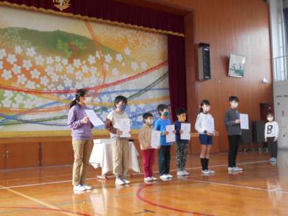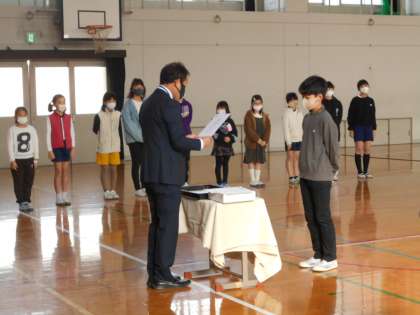 最後に,珠算で優秀な成績をおさめた児童に盾を渡しました。