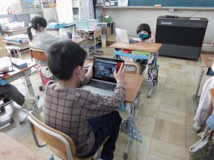 ログインを果たした後は,ロイロノートという学習ソフトで,写真を撮ったり,その写真に書きこんだり,色をぬったりして思い思いに楽しんでいた子ども達です。