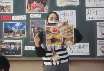 1回目は韓国・朝鮮の食べ物や服装について知り,あいさつの言葉を