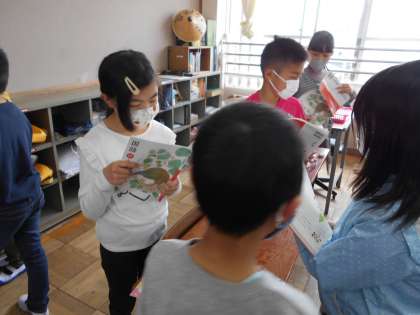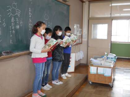 国語の学習では,「春のうた」の詩を工夫して読む活動をしました。