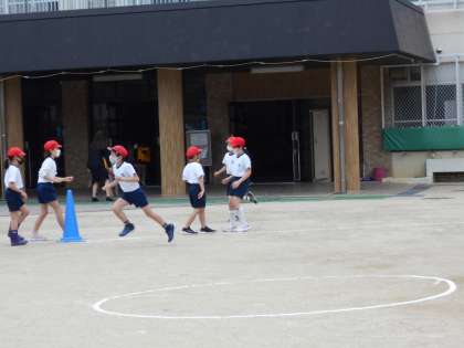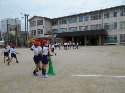 体育の学習は体ほぐしの運動をしています。