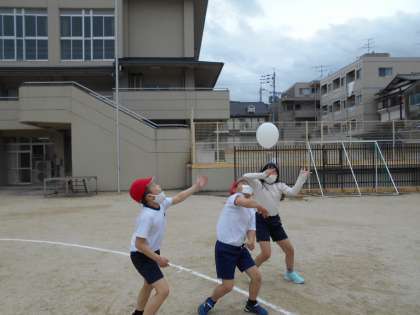 今日は,ドンジャンケンと風船バレーをしました。