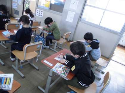 昨日,はじめてえんぴつの持ち方を確かめて,ジグザグやぐるぐるの線をなぞり書きする練習をしました。今日ももう一度練習をしてから,「はじめてかいた自分の名前」に挑戦しました。「かっこよく書けなくても大丈夫なこと・かたつむりのスピードでゆっくりていねいに書くこと」と声かけをしてから,がんばって書きました。集中して書きました。来週の参観日のときに見てあげてください。