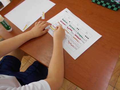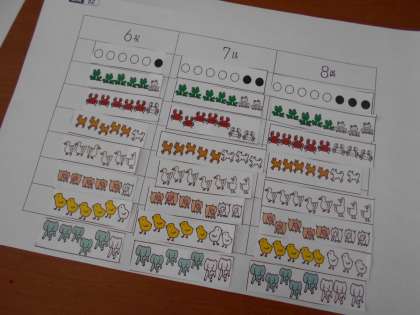 算数の学習は数の学習として,いろいろなものを数えて,数毎の表に分類して貼り付け,数の構成について具体的な操作を通し学習しました。
