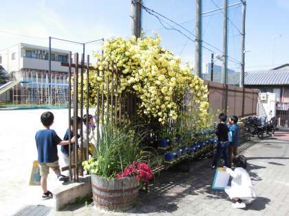 今週の木曜日は雨の合間の晴れ日でした。ぽかぽか陽気の中,お日様に誘われみんなで校庭に出て春を探しました。