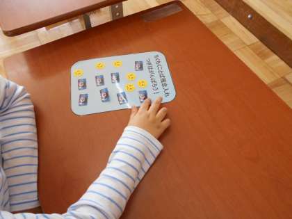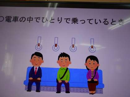 それから,話をしていいときと,良くないときとを考えました。身近な電車の中などの場面を通し,考えました。