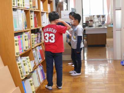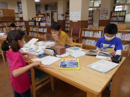 図書室の本で都道府県のことを調べ,カードに書いてクイズにします。