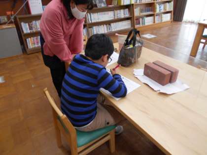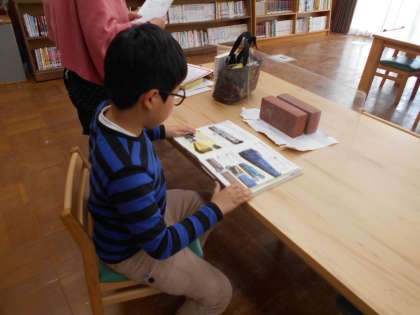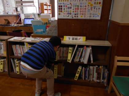 学校図書館の本の背表紙の下には,ラベルがついていて,番号やカタカナが書かれています。それは,意味があって,「これは,生きものに関しての本」「これは乗り物についての本」というように,種類に分けて,みんなが読みたい本を探しやすくされていることを知ることができました。