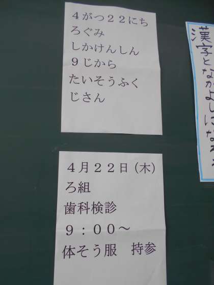 平仮名ばかりの連絡文と,漢字入りの同じ連絡文とを見比べました。