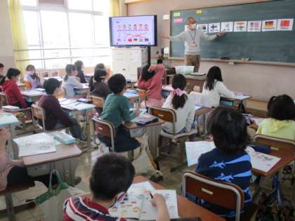 最後は,友だち3人といろいろな国のあいさつを練習しました。