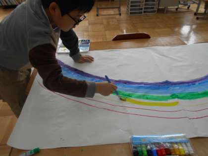 図工で虹を描きました。一色ずつ,ていねいに描くことを頑張りました。