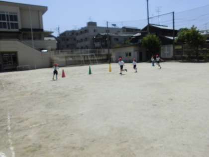 今回は,単元の最後にリレー競争をする準備として,バトンパスの練習をしました。