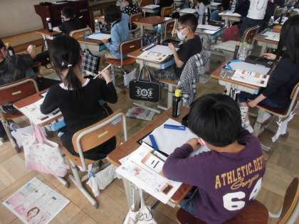 今日は書写の時間に初めての習字をしました。
