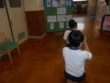 できるだけ,密での会話にならないように,保健室での動きが絵になっていて,それを見て見通しをもちながら,待ちました。