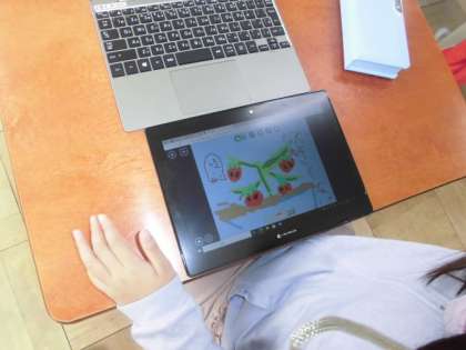 そのミニトマトが成長するのを想像して,みんなでタブレットを使ってミニトマトのイラストをかくことにしました。