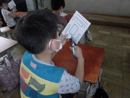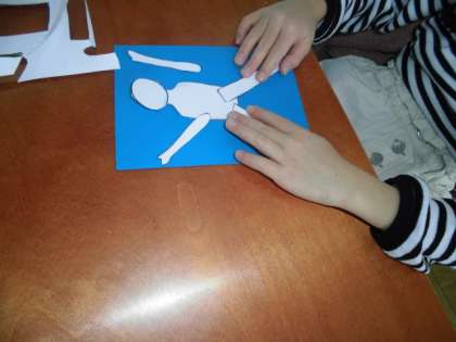 ということでいろいろなポーズを考えるために人の体のパーツに分かれた紙をハサミでチョキチョキ。