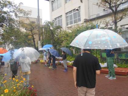 ろ組代表委員として,朝のあいさつ運動で,登校してくる全校のみなさんにあいさつをしました。雨の中でしたが,たくさんの友だちと一緒に,笑顔で友だちに届くような声で,気持ちの良いあいさつができました。