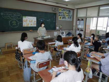 家庭科の学習では,布を色々な縫い方で塗ったり,ボタンを付けたりすることに挑戦しています。初めは,針に糸を通したり,玉止めを作ったりするだけでも時間がかり,なかなか思うようにいきませんでしたが,子ども達は,どの課題も一生懸命取り組みます。最後まで丁寧にやりきる姿勢がすばらしく,毎回レベルアップしています。今日のボタン付けでは,布とボタンの間にギュッと糸をまく作業が上手で,布にボタンがきちんとつけられました。マスターした技は,ぜひ生活の中でも生かしてほしいです。