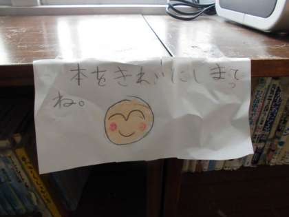 その後ふと本棚を見てみるとかわいらしいポスターが貼られていました。