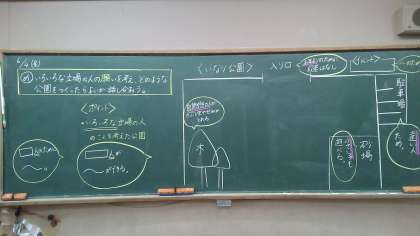 政治では,国民や市民が政治に参加し,その願いや声を反映することが大切であると学びました。今日は,「いろいろな立場の人の願いを考えて稲荷公園をつくろう。」というめあてで学習を行いました。