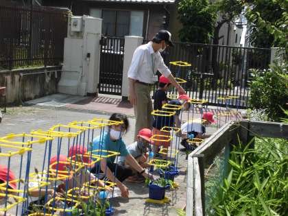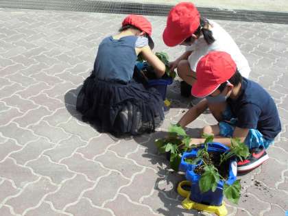 5時間目は,「こんなにアサガオが大きくなって,うえきばちがきゅうくつになってきたから,2つだけ残してあとのアサガオはお引越しをしてあげよう。」と間引きをしました。今日持ち帰っています。そのあと支柱たてもして,これでもう安心です。「何色が咲くかな?」ということがやっぱり楽しみな子ども達です。