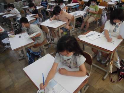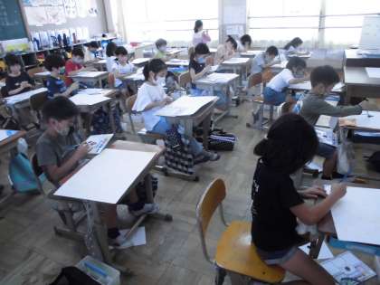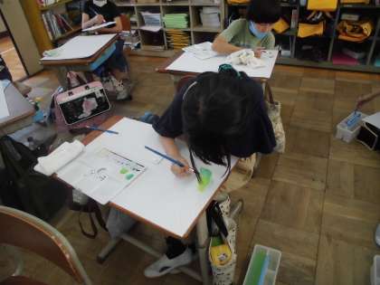 今日は,画用紙に自分がイメージした6月の絵を描いていきました。