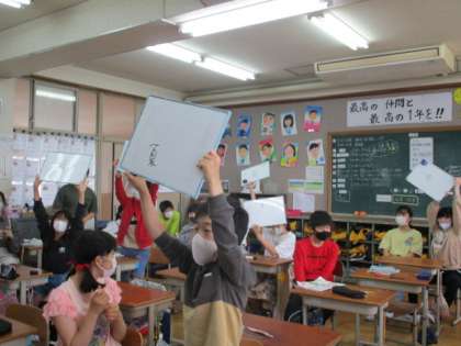 今週はプロジェクト係が中心となって,みんな遊びやクイズ大会を主催してくれました。コロナ対策で運動場が中間休みか昼休みのどちらかしか使えないので,外に出られないときは,みんなが退屈しないように楽しいクイズを出してくれます。「2×5×60×0=?」といった算数問題や,「灰汁はなんて読む?」などの漢字クイズ,ひっかけ問題もあり,大盛り上がりでした。
